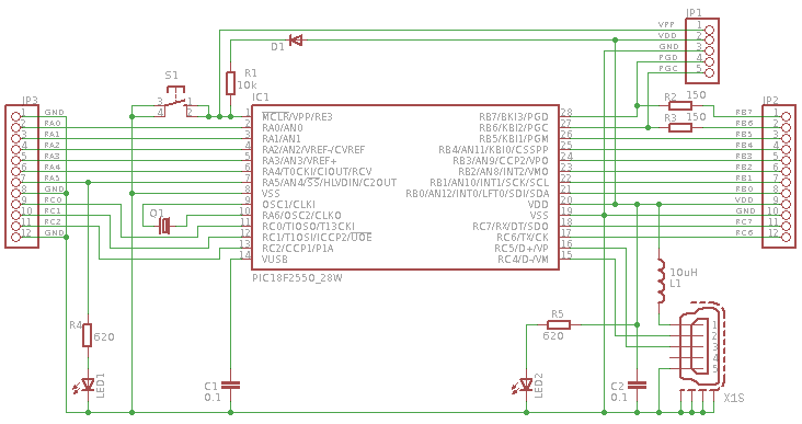 ЫЙТПЛЗП DIP24) ОБ ЛПФПТЩЕ ЧЩЧЕДЕОЩ МЙОЙЙ РЙФБОЙС, ЧУЕ ЧЩЧПДЩ РПТФПЧ PIC18F2550 ЛТПНЕ MCLR/RE3 ОБ ЛПФПТПН